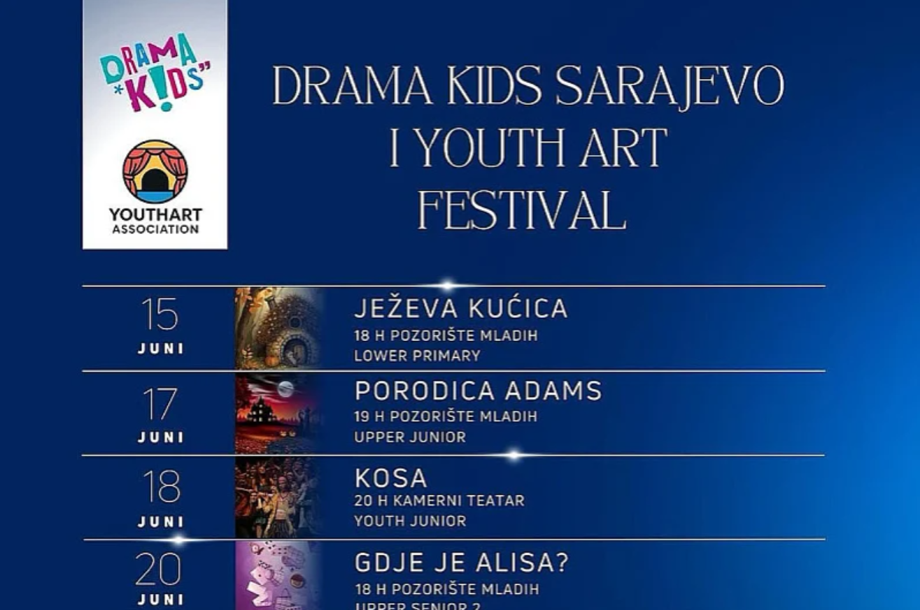 Prvo izdanje Drama Kids Festivala bit će održano od 15. do 29. juna u Pozorište mladih Sarajevo i Kamerni teatar 55 u Sarajevo, gdje organizatori najavljuju bogat i raznovrstan program. Festival predstavlja značajan kulturni događaj koji okuplja djecu, mlade i odrasle s ciljem promocije umjetnosti, kreativnog izražavanja i ličnog razvoja kroz pozorište.